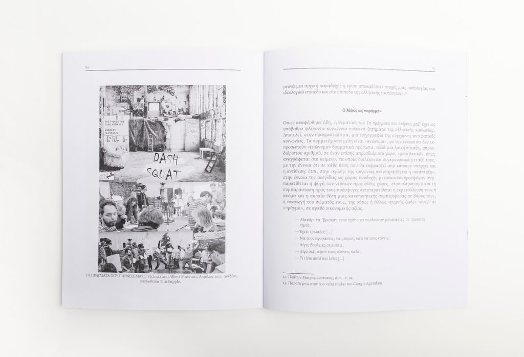 Όπως αναφέρει χαρακτηριστικά ο Δημήτρης Τσατσούλης στο επίμετρο της έκδοσης: «Τα πράγματα που παίρνεις μαζί σπάζουν τη μονοτονία, την ανωνυμία, ενώ ταυτόχρονα δείχνουν τη διαφορετικότητα του κάθε ατόμου, τη μοναδικότητά του, πέρα από εθνικές ή πολιτισμικές ταυτότητες. Πέρα από τους αντωνυμικούς δείκτες του “εμείς” ή του “άλλοι”, διεκδικώντας έστω για λίγο το αυτεξούσιο, πολυμορφικό εγώ, διαμορφωμένο από τις δικές του αναμνήσεις».